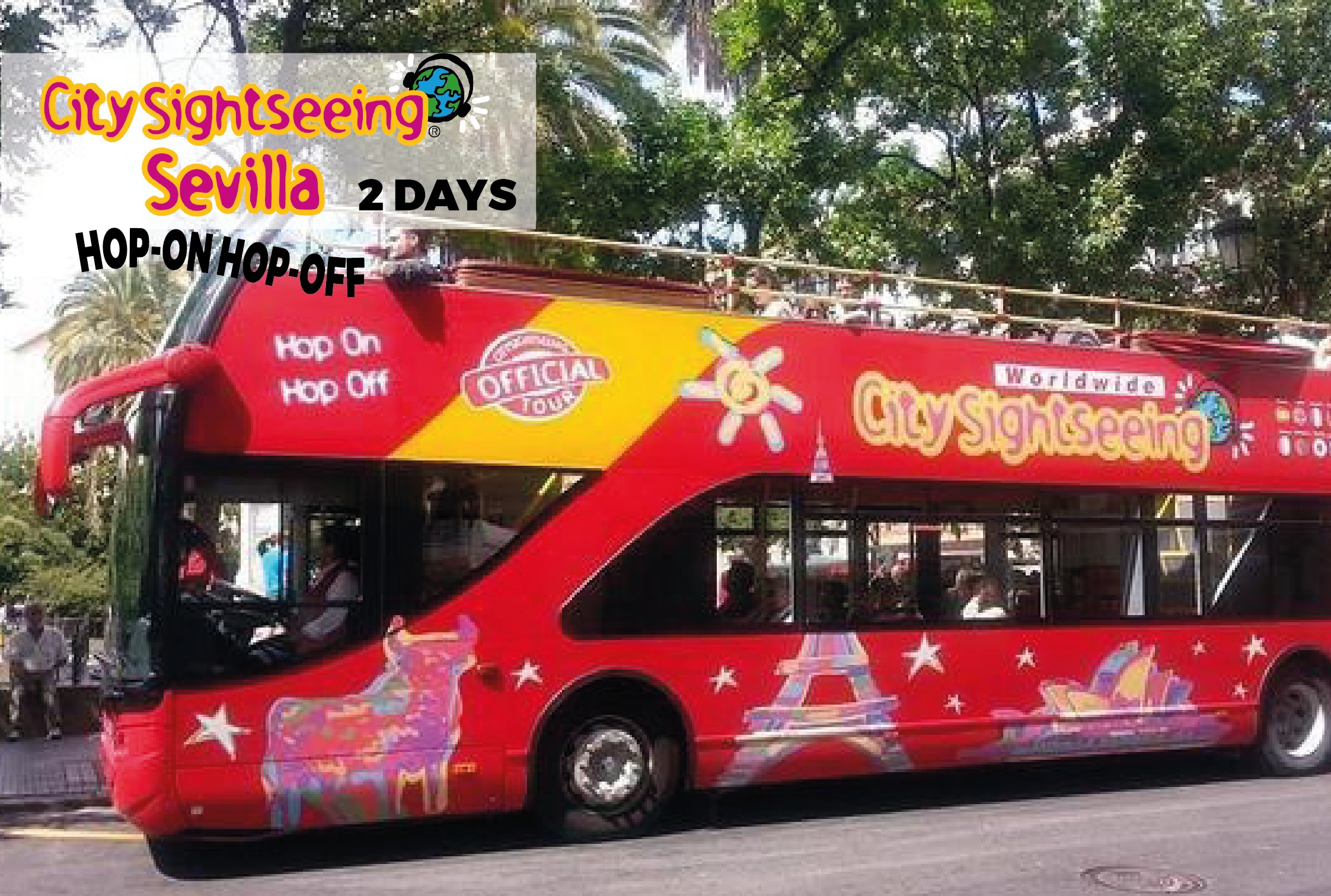 Elige tu modalidad 24 o 48 horas y disfruta de los descuentos en bares y restaurantes, entradas gratuitas a museos, iglesias y otros lugares de interés y de tours a pie totalmente gratuitos y que van incluidos en la compra de tu billete para bus turístico en Sevilla.